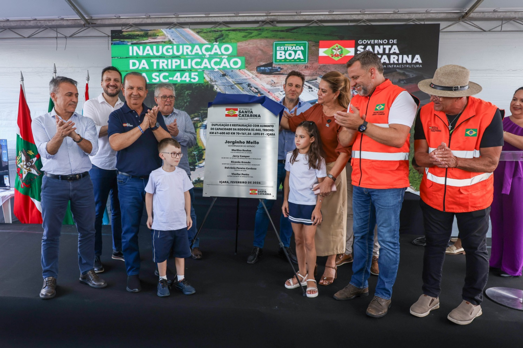 O governador Jorginho Mello inaugurou nesta segunda-feira, 9, a obra de triplicação da SC-445, entre a cidade de Içara e a BR-101, no Sul do estado. A melhoria faz parte do programa Estrada Boa, compreende 2,5 quilômetros e custou cerca de R$ 44 milhões. A via vai colaborar com a fluidez do trânsito da região, já que se trata do principal acesso à rodovia federal. Durante o ato, o governador também anunciou R$ 14,6 milhões em investimentos para obras em escolas de Içara e Balneário Rincão.
