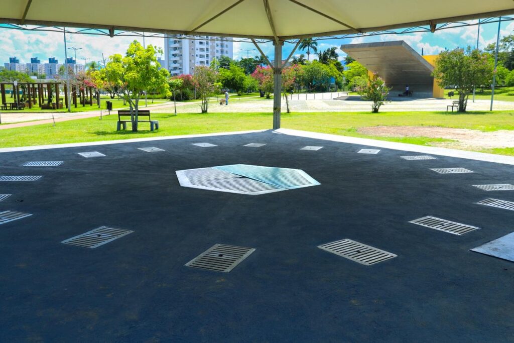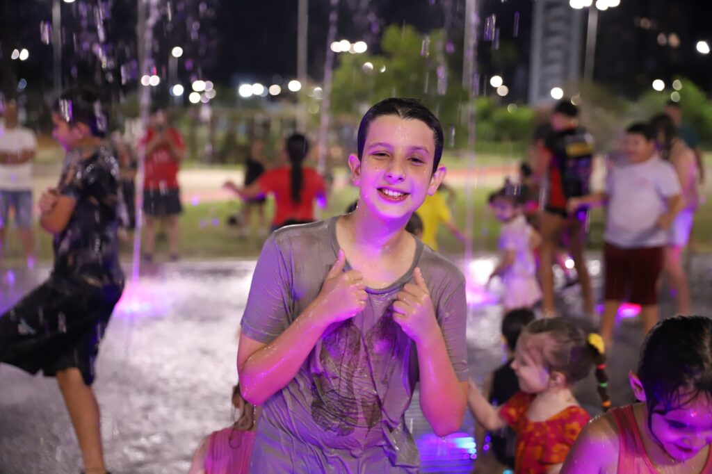 “O chafariz conta com 18 jatos de água auxiliares e a central em formato de vulcão, onde crianças e adultos podem curtir momentos de refresco. O equipamento tem capacidade simultânea para 40 pessoas e funciona como uma ‘dança das águas’, com projetores de luz no chão que realizam movimentos coloridos sincronizados. Temos quatro cores fixas, cujas misturas geram 21 sequências coloridas, é uma verdadeira atração turística”, comentou.